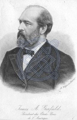 აშშ-ს პრეზიდენტი ჯეიმზ გარფილდი. გრავიურა.