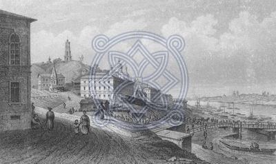 ბაზრობის ხიდი ნიჟნი–ნოვგოროდში. გრავიურა.