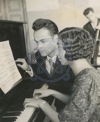ფოტო № 67/6 განყოფილება: სპეციალური სკოლები გადაღების ადგილი: ხაშური ავტორი: პიროვნებები ფოტოზე: ბ.ა. გულისაშვილი, აღწერა: ხაშურის მუსიკალური სასწავლებლის პედაგოგი ბ.ა. გულისაშვილი და ფრიადოსანი მოსწავლე თამარ თადუმაძე გაკვეთილზე. თარიღი: 1937 |