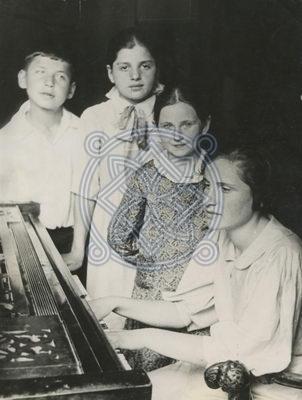 ნორჩი მუსიკოსები ქუთაისიდან: ე.მახვილაძე, ლ.ყუბანეიშვილი, ე.მამგეშვილი და ო.კაშია.