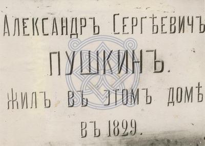 მემორიალური დაფა სახლზე, სადაც ცხოვრობდა ა.ს.პუშკინი თბილისში ყოფნის დროს.
