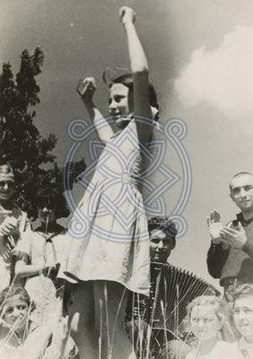 ფოტო № 67/55 განყოფილება: ცეკვები (ქორეოგრაფია,ხალხური,სამეჯლისო და სცენური ცეკვები) გადაღების ადგილი: თბილისი ავტორი: პიროვნებები ფოტოზე: ციალა შუბლაძე, აღწერა: პიონერი ციალა შუბლაძე ცეკვა ,,მთიულურის’’ შესრულების დროს. თარიღი: 1937 |