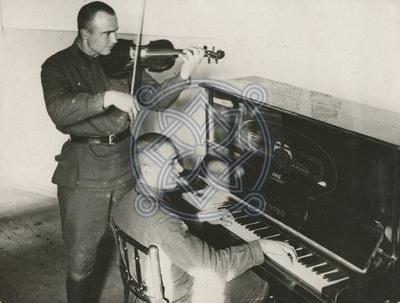 წითელარმიელები მოდებაძე და ერემეევი ერთ–ერთ მუსიკალურ საღამოზე გამოსვლის დროს