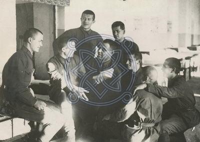 წითელარმიელი ტ.სიტნიკოვი თანამებრძოლებს უკითხავს საკუთარ ლექსებს.