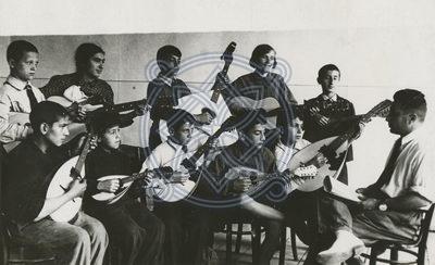 ფოტო № 168/14 განყოფილება: მხატვრული თვითმოქმედება, ოლიმპიადები გადაღების ადგილი: თბილისი ავტორი: პიროვნებები ფოტოზე: კ. კონიევი, აღწერა: პიონერთა და მოსწავლეთა სიმებიანი ორკესტრი კ.კონიევის ხელმძღვანელობით მეცადინეობის დროს. თარიღი: 1938 |