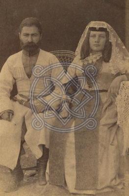 ქალი და მამაკაცი ქართულ ეროვნულ სამოსში.