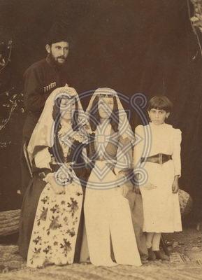 უცნობ პირთა ჯგუფი ქართულ ეროვნულ სამოსში.