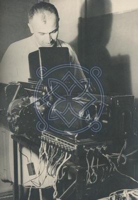ფიზიოლოგიის ინსტიტუტის მეცნიერ–თანამშრომელი ლაბორატორიაში მუშაობის დროს.