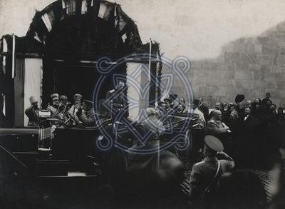 ფოტო № 403/26 განყოფილება: იმპერატორები, მეფეები,დედოფლები, პრინცები, პრინცესები გადაღების ადგილი: თბილისი ავტორი: პიროვნებები ფოტოზე: II ნიკოლოზ, აღწერა: ნიკოლოზ II სიონის ტაძრის შესასვლელთან სამხედრო და სასულიერო პირებთან ერთად. თარიღი: 1916 |