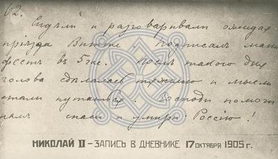 ნიკოლოზ II–ს დღიურის ჩანაწერი. 1905 წ. ფოტორეპროდუქცია.