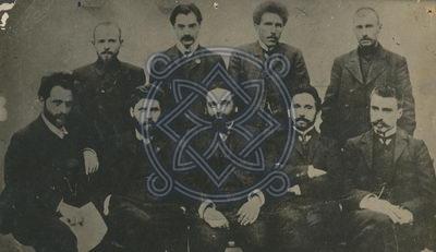 ფოტო № 409/10 განყოფილება: უმაღლესი სახელმწიფო ორგანოები ავტორი: პიროვნებები ფოტოზე: ს. ჯუღელი, . ჯაფარიძე, ვ. ზურაბოვი, გ. მახარაძე, კ. წერეთელი, კ. კანდელაკი, ჭოლა ლომთათიძე, აღწერა: კავკასიის დეპუტატთა ჯგუფი რუსეთის სათათბიროში. სხედან: ს.ჯუღელი, ჯაფარიძე, ვ.ზურაბოვი, გ.მახარაძე, კ.წერეთელი. დგანან: კ.კანდელაკი, ჭ.ლომთათიძე და სხვები. თარიღი: 1907 |