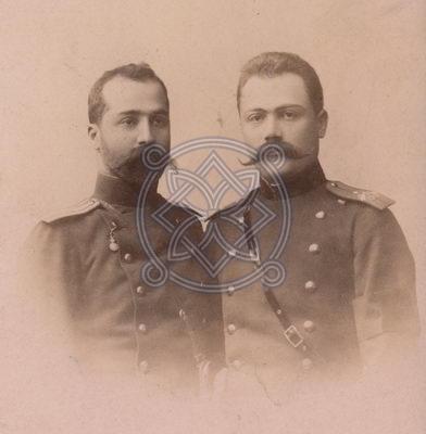 ფოტო № 409/13 განყოფილება: სამხედრო პირები, მოსამსახურეები გადაღების ადგილი: თბილისი ავტორი: პიროვნებები ფოტოზე: დიდი მთავარი ალექსანდრე-რუსეთის, აღწერა: პოლიტიკური და სამხედრო მოღვაწე, არტილერიის გენერალი კოტე აფხაზი (მარჯვნივ) მეგობართან ერთად თარიღი: [1900–იანი] |