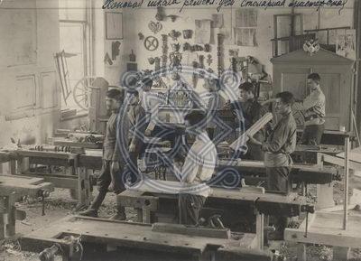 ხონის სახელოსნო სასწავლებელი. მოსწავლეები სადურგლო სახელოსნოში.