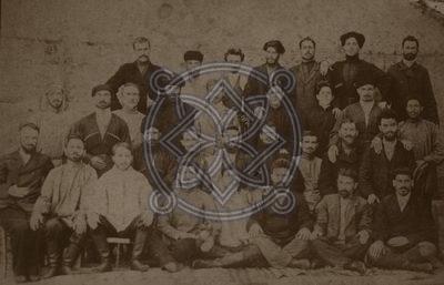 ფოტო № 684/24 განყოფილება: რევოლუციონერები გადაღების ადგილი: ბათუმი ავტორი: პიროვნებები ფოტოზე: (ი.ბ.ჯუღაშვილი) სტალინი, აღწერა: აჭარის რევოლუციური ორგანიზაციის წევრთა ჯგუფი. ბოლო რიგში ცენტრში დგას ი.ჯუღაშვილი ( სტალინი ). თარიღი: 1902 |