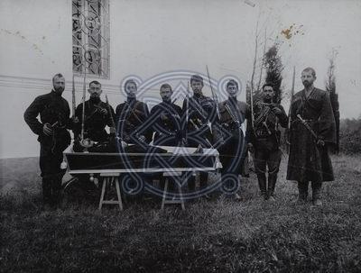 შეიარაღებულ პირთა ჯგუფი მოკლული თანამებრძოლის ცხედართან.