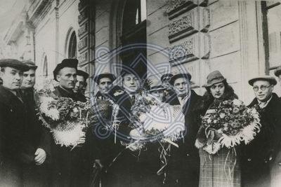 ფოტო № 787/77 განყოფილება: მსახიობები, რეჟისორები, ოპერატორები გადაღების ადგილი: კიევი ავტორი: პიროვნებები ფოტოზე: ნატო ვაჩნაძე, აკაკი ვასაძე, აღწერა: საქართველოს კულტურის მუშაკთა დელეგაცია უკრაინაში. მსახიობები ნატო ვაჩნაძე,აკაკი ვასაძე და სხვები ჯგუფში. თარიღი: 1940 |