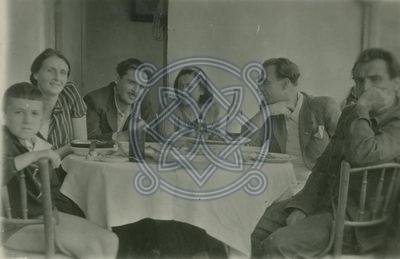 ფოტო № 787/83 განყოფილება: მსახიობები, რეჟისორები, ოპერატორები გადაღების ადგილი: თბილისი ავტორი: პიროვნებები ფოტოზე: ნატო ვაჩნაძე, ბ. თუმანიშვილი, თ. ბოლქვაძე, ნ. მეხუზლა, სერგო ზაქარიაძე, აღწერა: მსახიობები ნ.ვაჩნაძე, ბ.თუმანიშვილი, თ.ბოლქვაძე,ნ.მეხუზლა და ს.ზაქარიაძე. ჯგუფში. თარიღი: 1940-იანი |