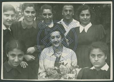 მსახიობი ნატო ვაჩნაძე სკოლის მოსწავლეებთან ერთად.