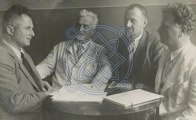 ფოტო № 869/21 განყოფილება: საქართველოს მეცნიერებათა აკადემია, აკადემიკოსები გადაღების ადგილი: თბილისი ავტორი: პიროვნებები ფოტოზე: დავით ყიფშიძე, კორნელი კეკელიძე, გიორგი ხაჭაპურიძე, აკაკი შანიძე, აღწერა: თბილისის სახელმწიფო უნივერსიტეტის რექტორი დავით ყიფშიძე, აკადემიკოსები კორნელი კეკელიძე, გიორგი ხაჭაპურიძე და აკაკი შანიძე საუბრის დროს. თარიღი: 1939 |