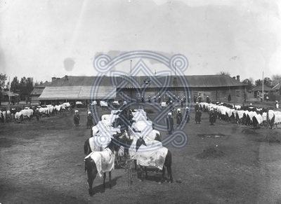 კავკასიის მეფისნაცვლის – ნიკოლოზ ნიკოლოზის ძის ცხენოსანი დაცვის წევრები ყაზარმის ეზოში.