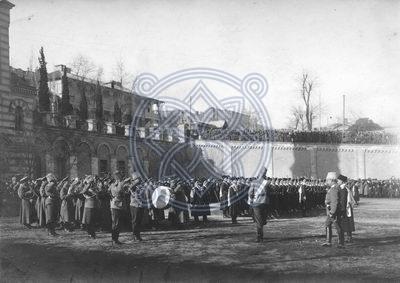 ფოტო № 936/4 განყოფილება: იმპერატორები, მეფეები,დედოფლები, პრინცები, პრინცესები გადაღების ადგილი: თბილისი ავტორი: პიროვნებები ფოტოზე: ნიკოლოზ ნიკოლოზის ძე რომანოვი, აღწერა: მეფისნაცვალი ნიკოლოზ ნიკოლოზის ძე სამხედრო ტაძრის ეზოში აღლუმის დროს. თარიღი: 1915 |