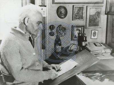 საქართველოს და სსრკ სახალხო მხატვარი, სოციალისტური შრომის გმირი ლადო გუდიაშვილი მუშაობის დროს.
