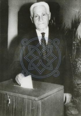საქართველოს და სსრკ სახალხო მხატვარი, სოციალისტური შრომის გმირი ლადო გუდიაშვილი საარჩევნო უბანში.