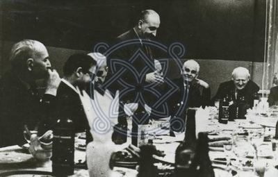 მხატვარი ლადო გუდიაშვილი სუფრასთან მეგობრებთან ერთად.