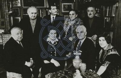 ფოტო № 1212/134 განყოფილება: მხატვრები გადაღების ადგილი: თბილისი ავტორი: პიროვნებები ფოტოზე: კარლო კალაძე, რასულ გამზათოვი, რევაზ მარგიანი, ლადო გუდიაშვილი, აღწერა: პოეტები კარლო კალაძე, რასულ გამზათოვი, რევაზ მარგიანი და სხვები სტუმრად მხატვარ ლადო გუდიაშვილთან. თარიღი: 1970–იანი |