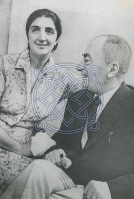 ფოტო № 1212/140 განყოფილება: მხატვრული ლიტერატურა,მწერლები,პოეტები,კრიტიკოსები გადაღების ადგილი: თბილისი ავტორი: პიროვნებები ფოტოზე: კონსტანტინე გამსახურდია, მირანდა ფალავანდიშვილი, აღწერა: მწერალი კონსტანტინე გამსახურდია და მისი მეუღლე მირანდა ფალავანდიშვილი. თარიღი: 1950–იანი |