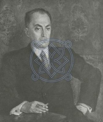 მწერალი კონსტანტინე გამსახურდია. პორტრეტი. ნახატის ფოტორეპროდუქცია.